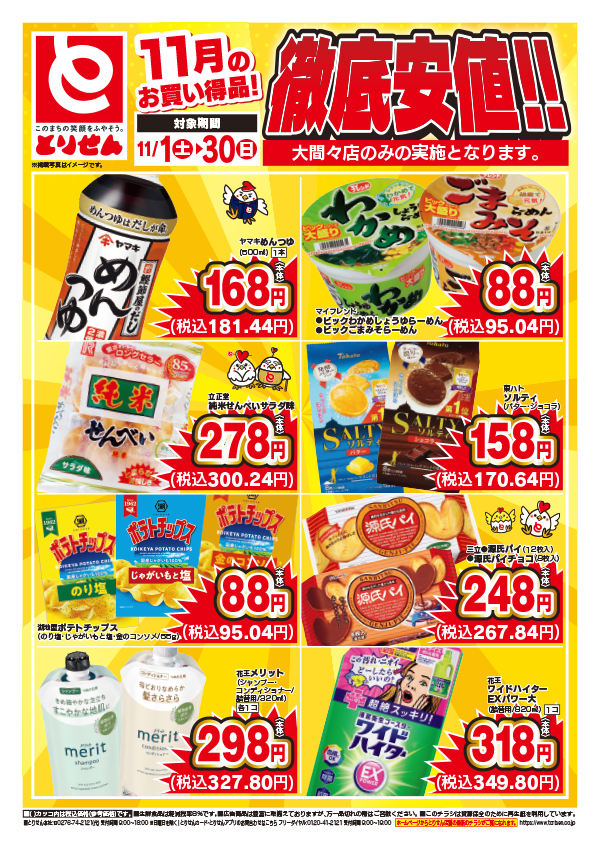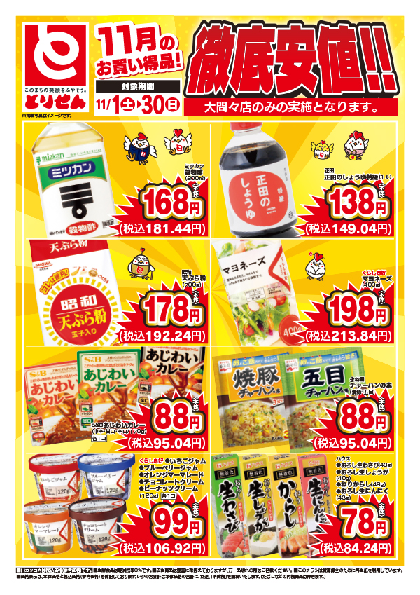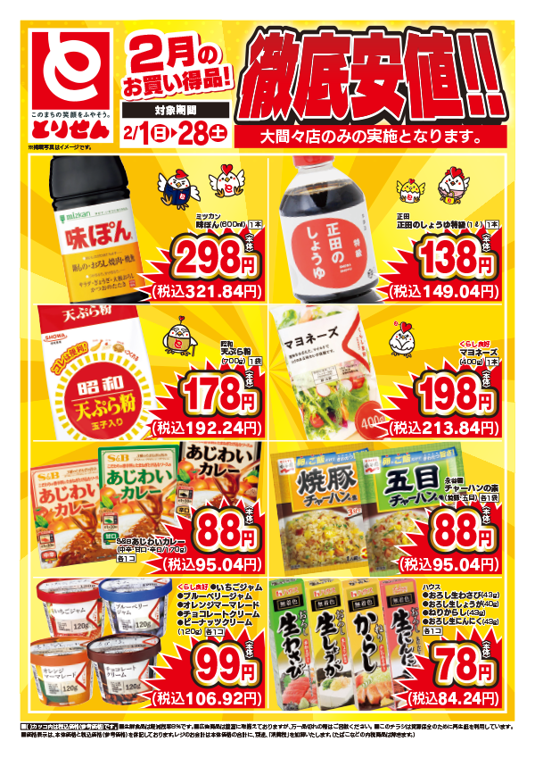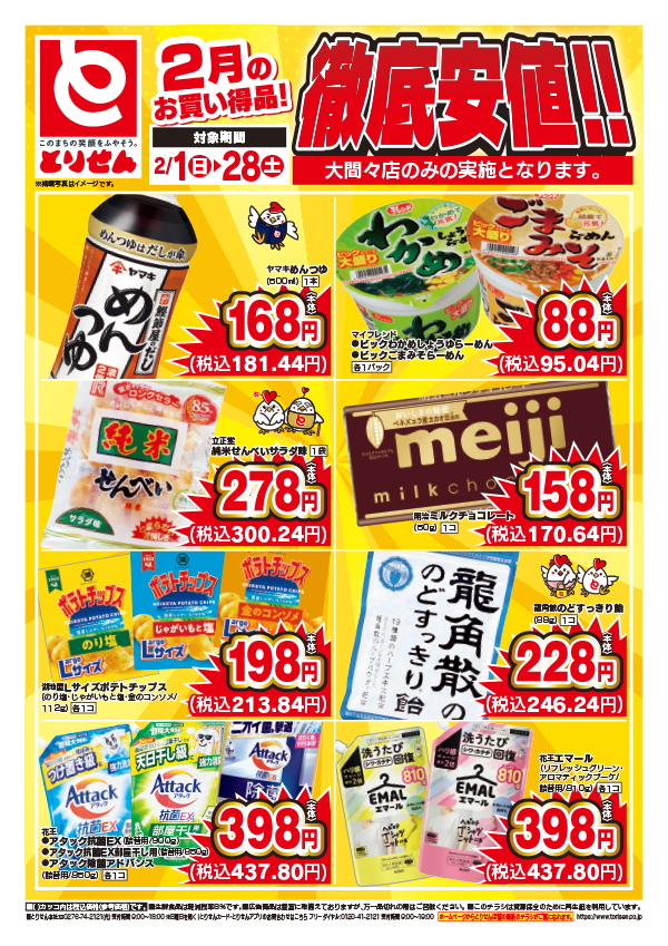 「安全です!新鮮です!とりせん!」をモットーに、毎日の生活にかかせない食料品や家庭用品をお求めやすい価格で提供しています。